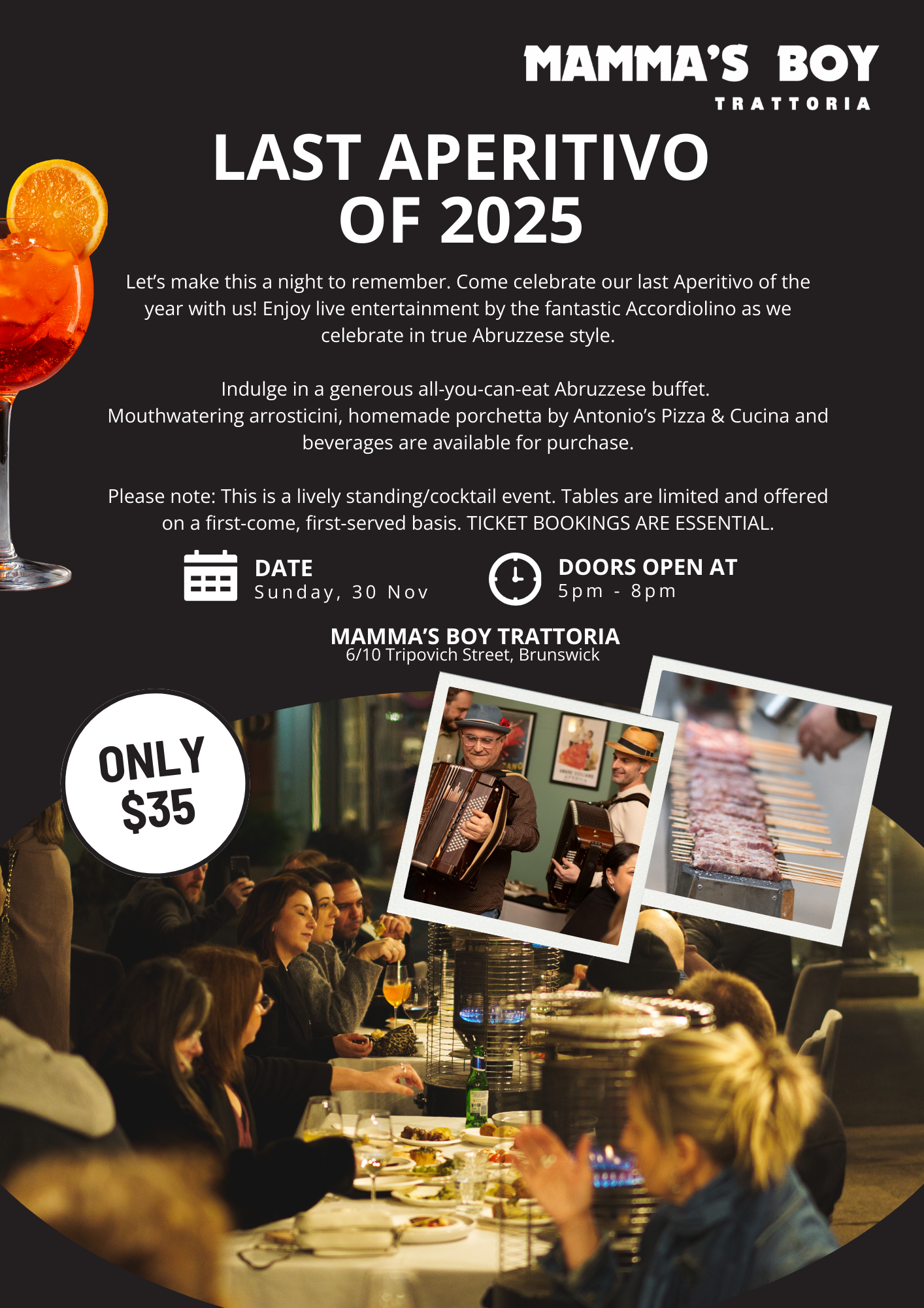 Located off Sydney Road Brunswick, Mamma’s Boy Trattoria takes you right into Mamma’s dining room in Abruzzo, Italy.